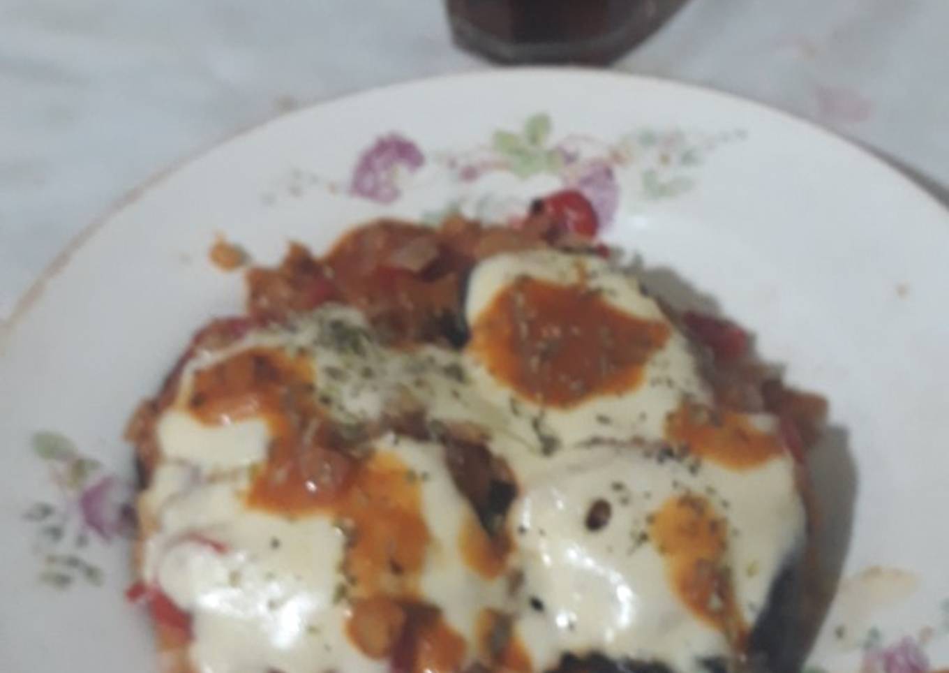- Con todo esto listo, se coloca en una fuente enaceitada, una capa de berenjenas grilladas, sobre ella la salsa preparada y una lonchas de queso fresco a la que se la rociará orégano. Continuar de igual modo hasta terminar los ingredientes.