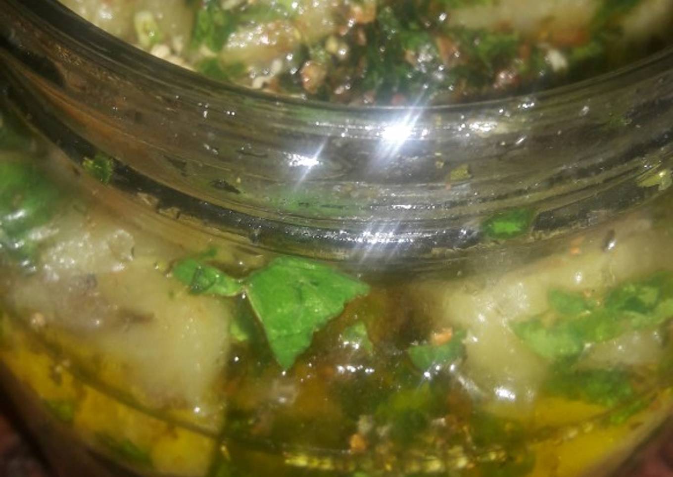 - Picar ajo perejil y ponerlo en un frasco agregarle los condimento y aceite hasta cubrir la mitad del frasco
