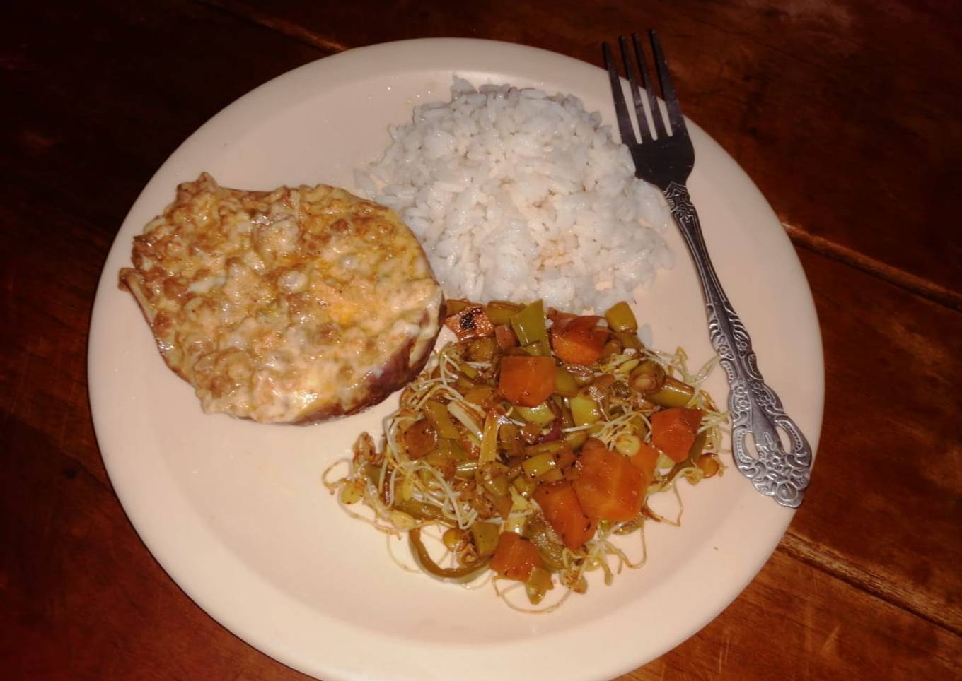 Berenjena rellena y chop suey de vegetales....🇸🇻