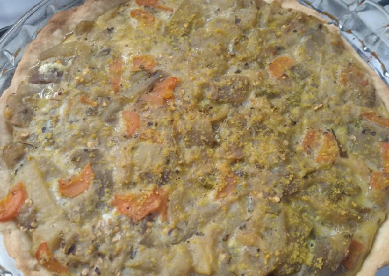 - Como opción, agregar un huevo batido al salteado para que una y colocar toda la preparación en la masa