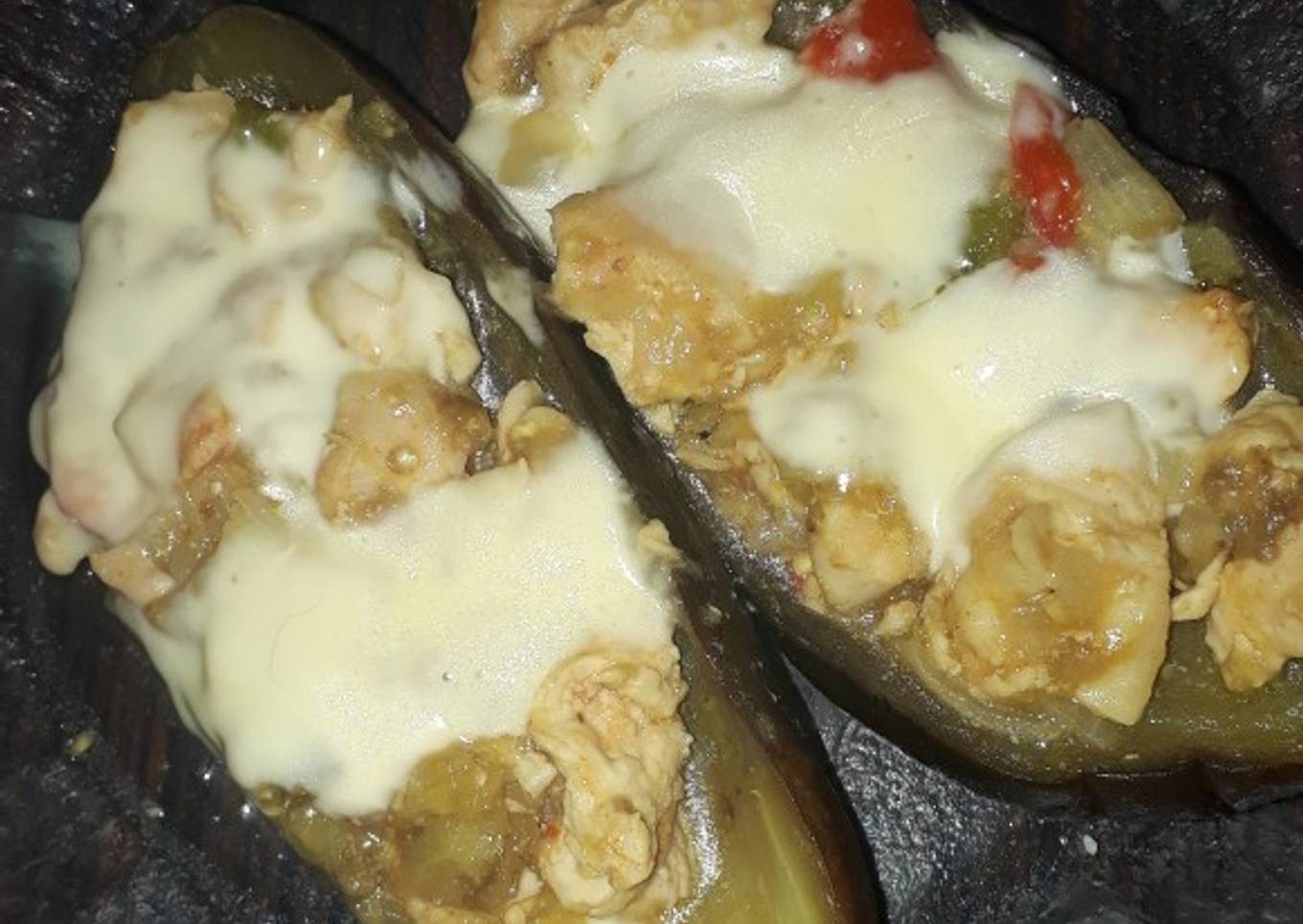 - Una vez cocinado todo, coloco en las berenjenas un poquito de queso y el relleno y m谩s queso encima...luego en olla a gratinar hasta que derrita el queso..