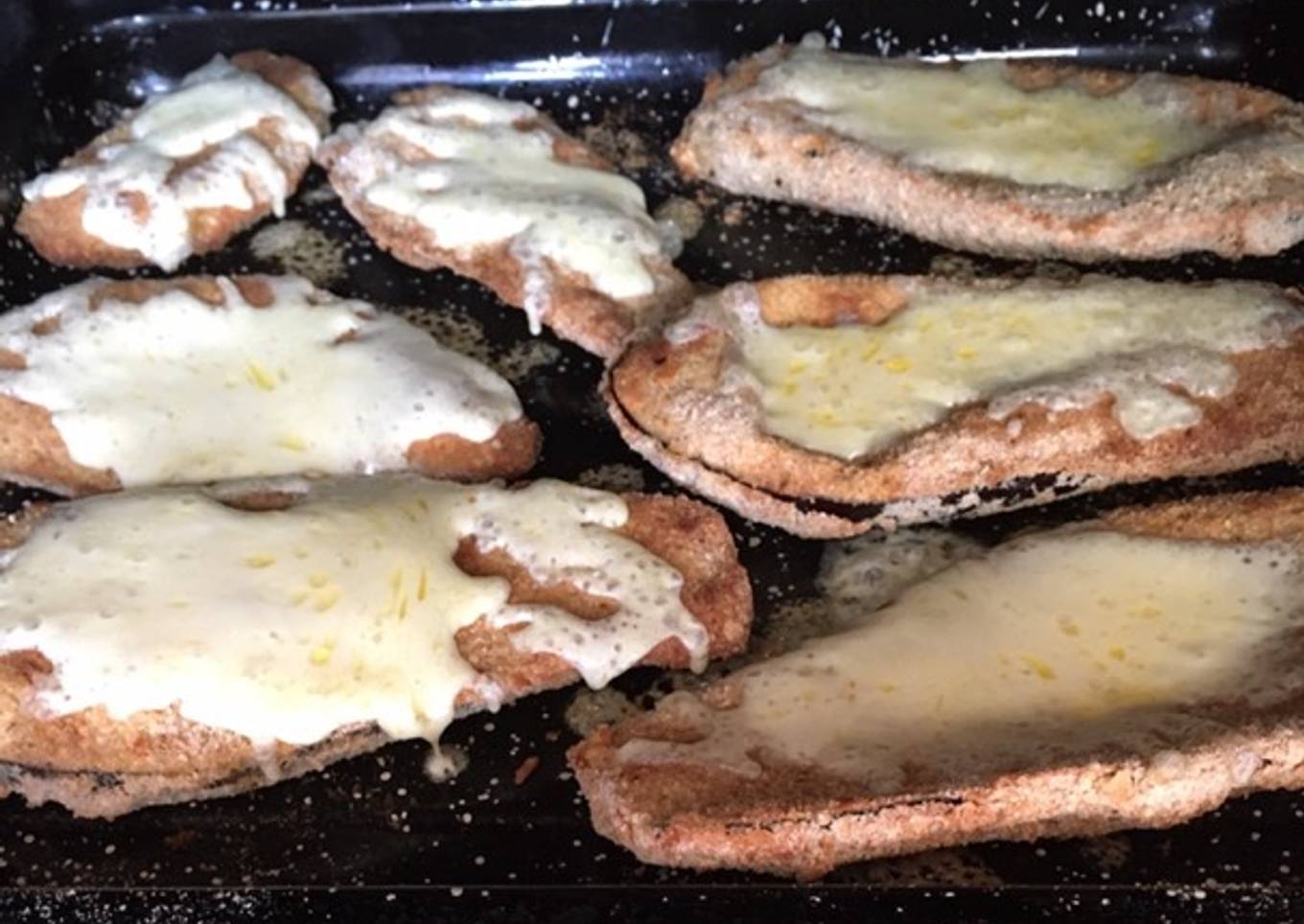 - En una asadera previamente aceitada, colocaremos las milanesas.