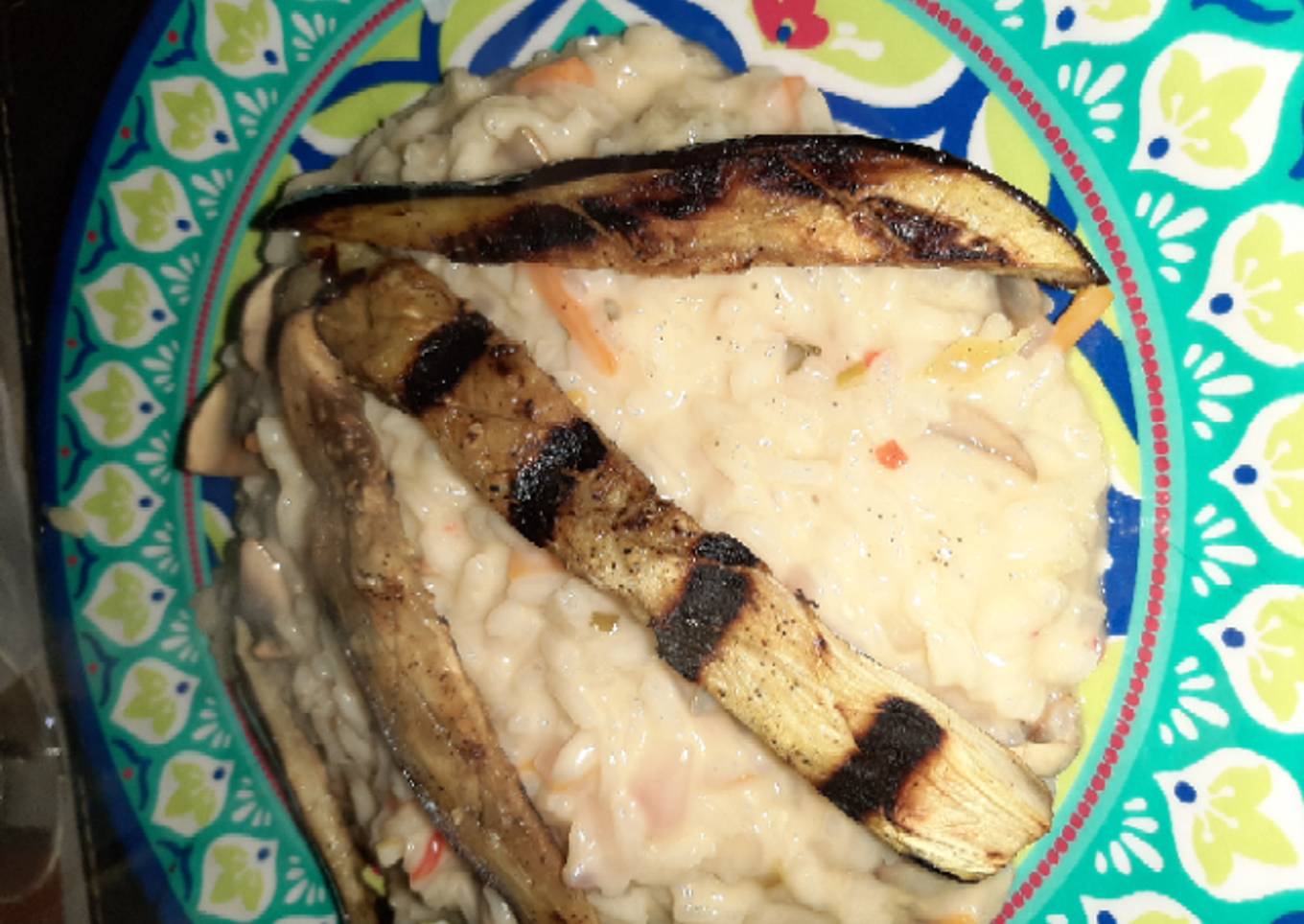 Risotto de Champiñones y berenjenas grilladas (Opción vegana 🐱👤)