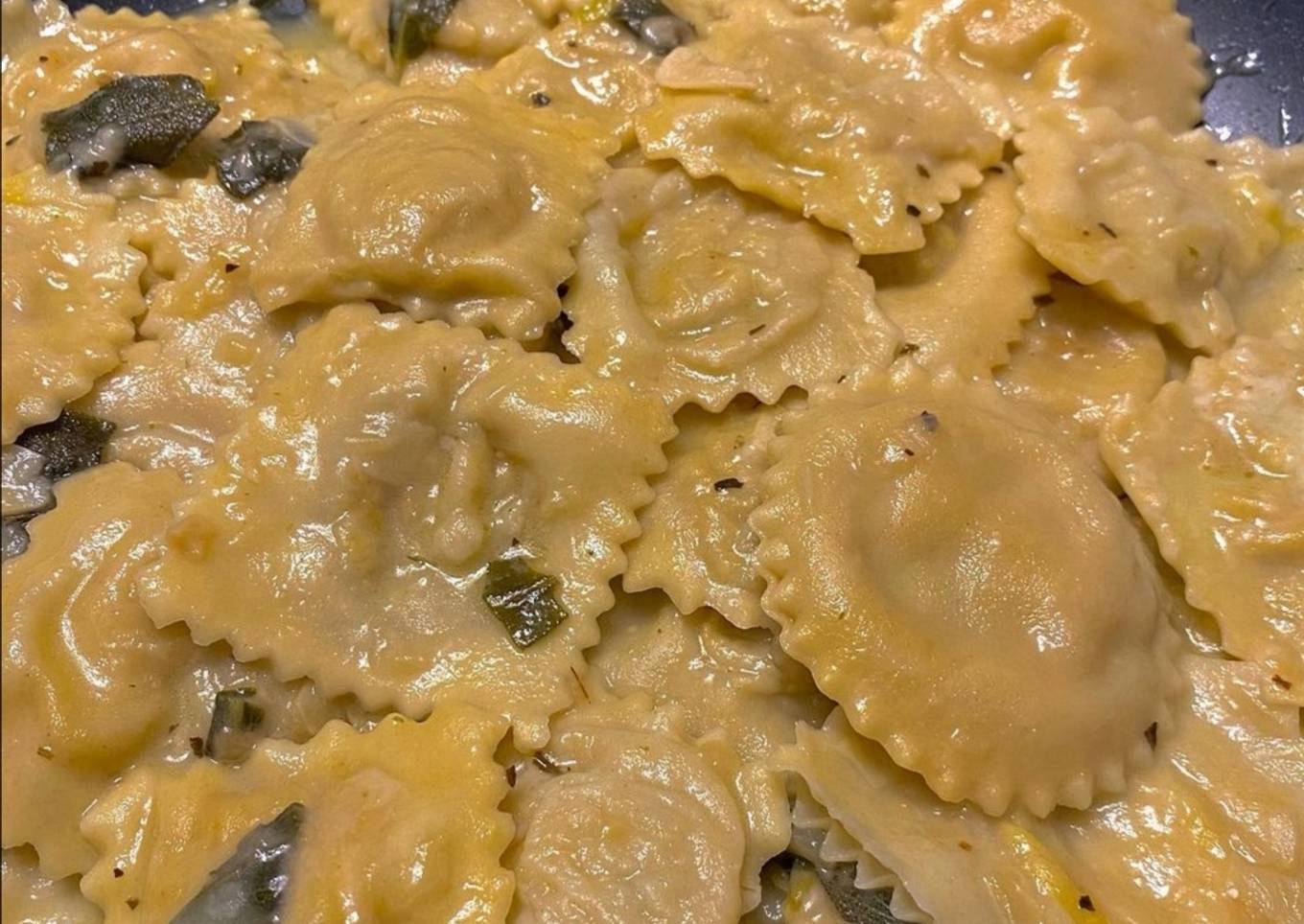 - Hervimos los raviolis durante 4 minutos. Y en una sartén con mantequilla derretida, hojas de salvia en trozos y el parmesano rallado, vamos a saltear todos nuestros raviolis. Y Listo!