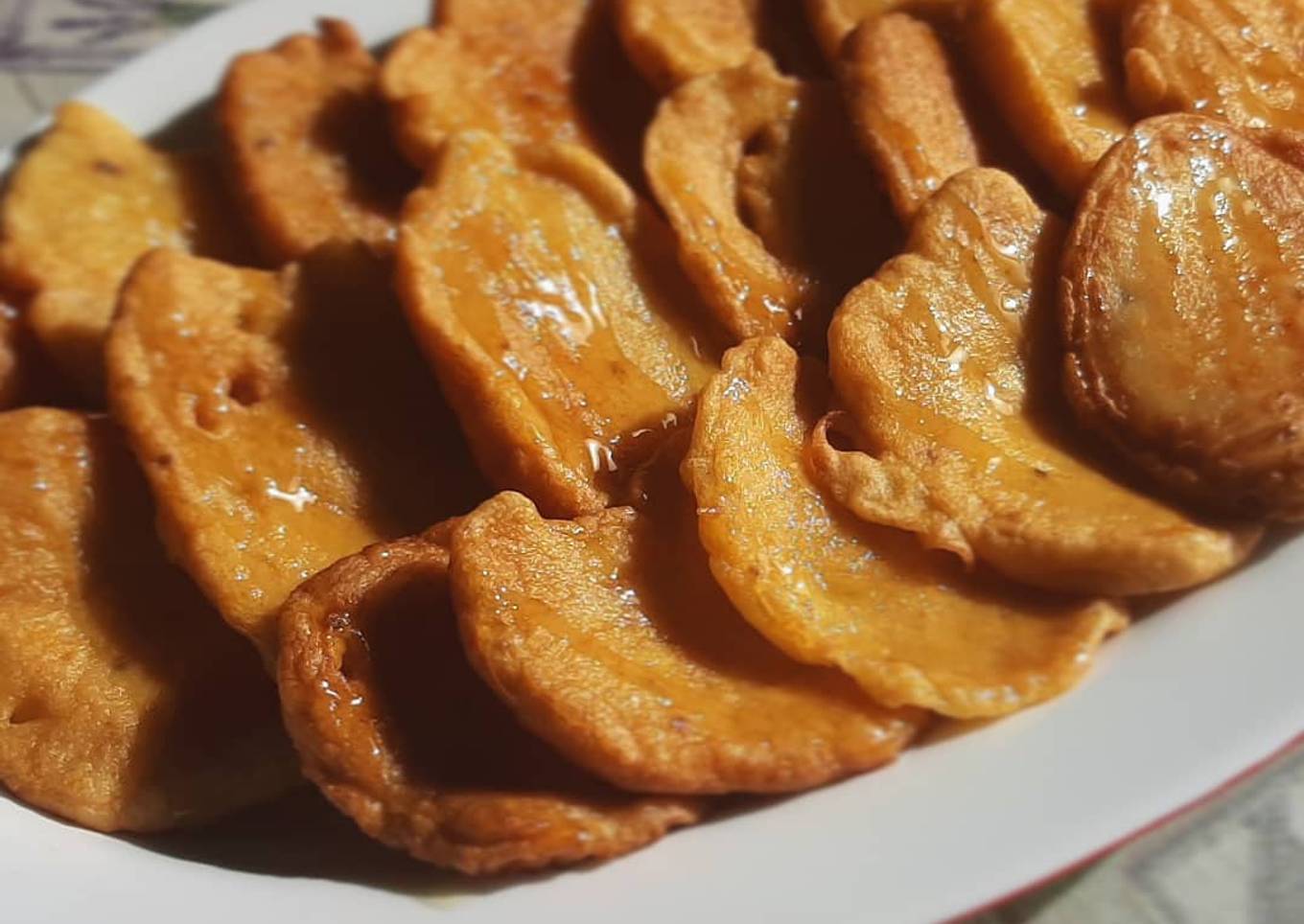 - En una sartén con bastante aceite caliente vamos añadiendo masa, le damos la vuelta para que se doren por ambos lados y retiramos en papel absorbente.