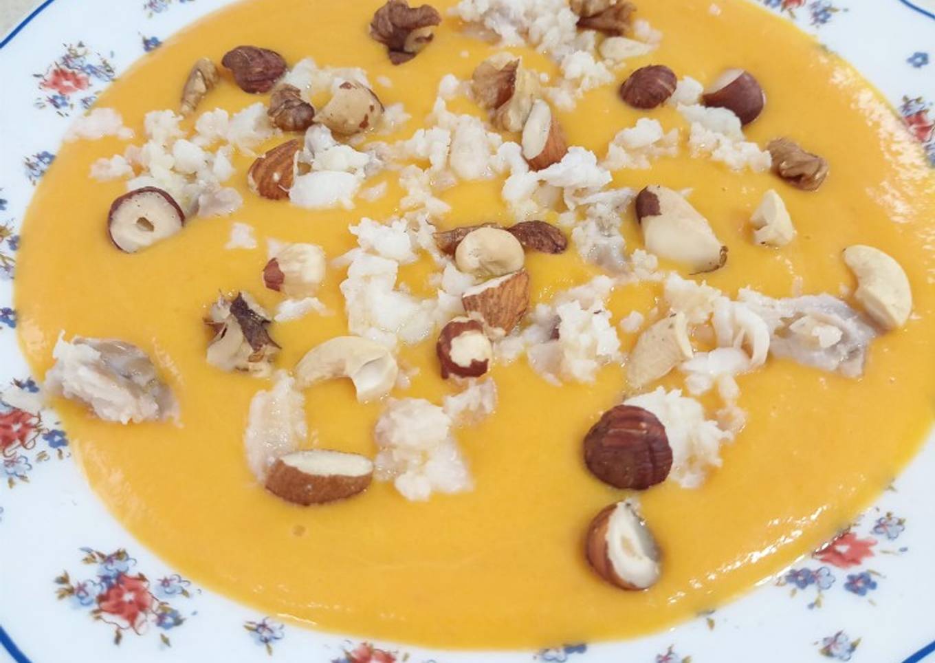 Hello everybody, I hope you're having an amazing day today. Today, I'm gonna show you how to prepare a distinctive dish, Crema de calabaza con bacalao. It is one of my favorites food recipes. This time, I am going to make it a bit unique. This is gonna smell and look delicious.