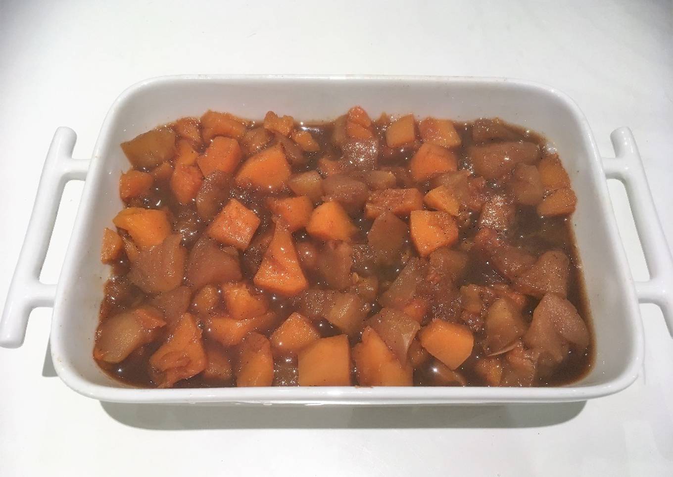 - Sugerencia: a) si se ablanda la manzana y la calabaza y queda mucho almíbar se sacan los trozos y se deja reducir el almíbar un poco más b) Servir fría.