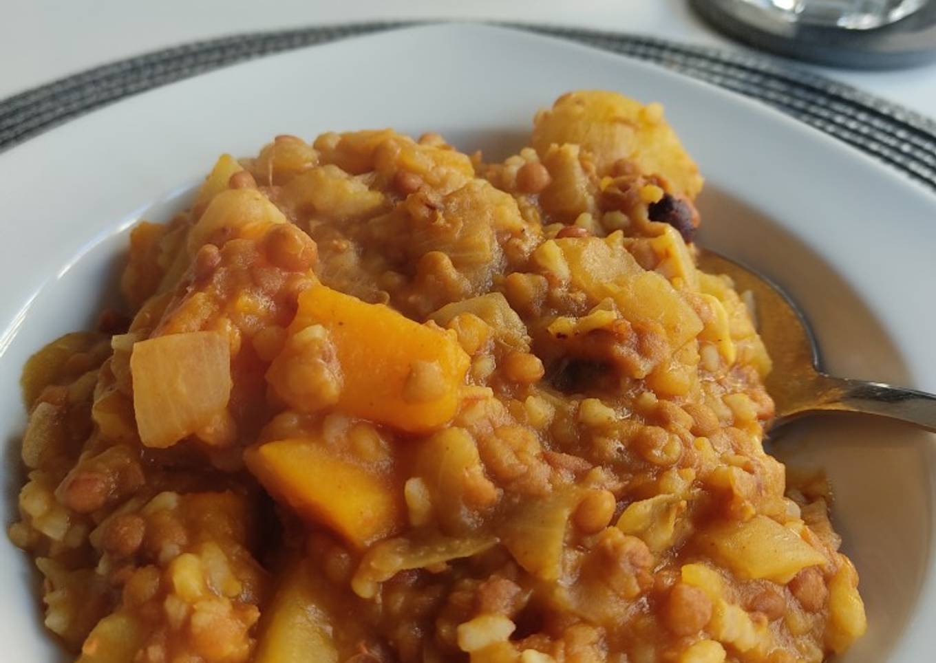 Steps to make to make Lentejas con calabaza de aprovechamiento